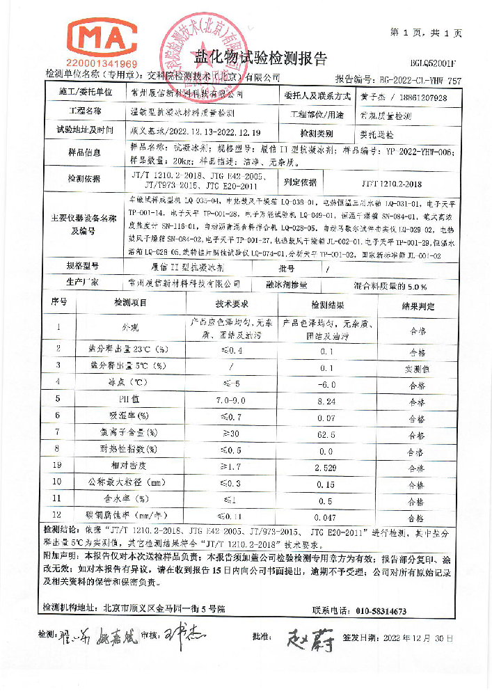 履信抗凝冰材料及抗凝冰瀝青試件第三方檢測(cè)報(bào)告